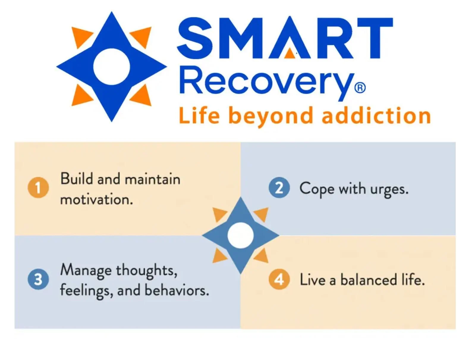 SMART Recovery ® (Self-Management And Recovery Training) program helps individuals gain independence from addictive behaviors (substances or activities).